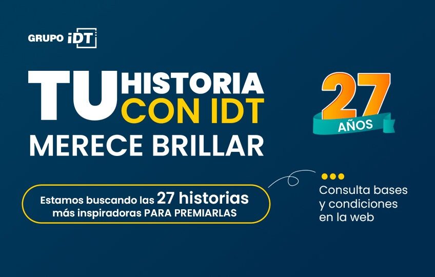 Invitación oficial a participar: “Las 27 mejores Historias por los 27 Años de IDT” Por nuestros 27 años, queremos que tu experiencia hable por nosotros. Si sos estudiante o egresado/a …