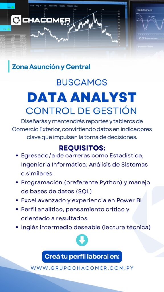 Si tu perfil está orientado al análisis de datos, programación y control de gestión, esta es tu oportunidad para dar el siguiente paso profesional.