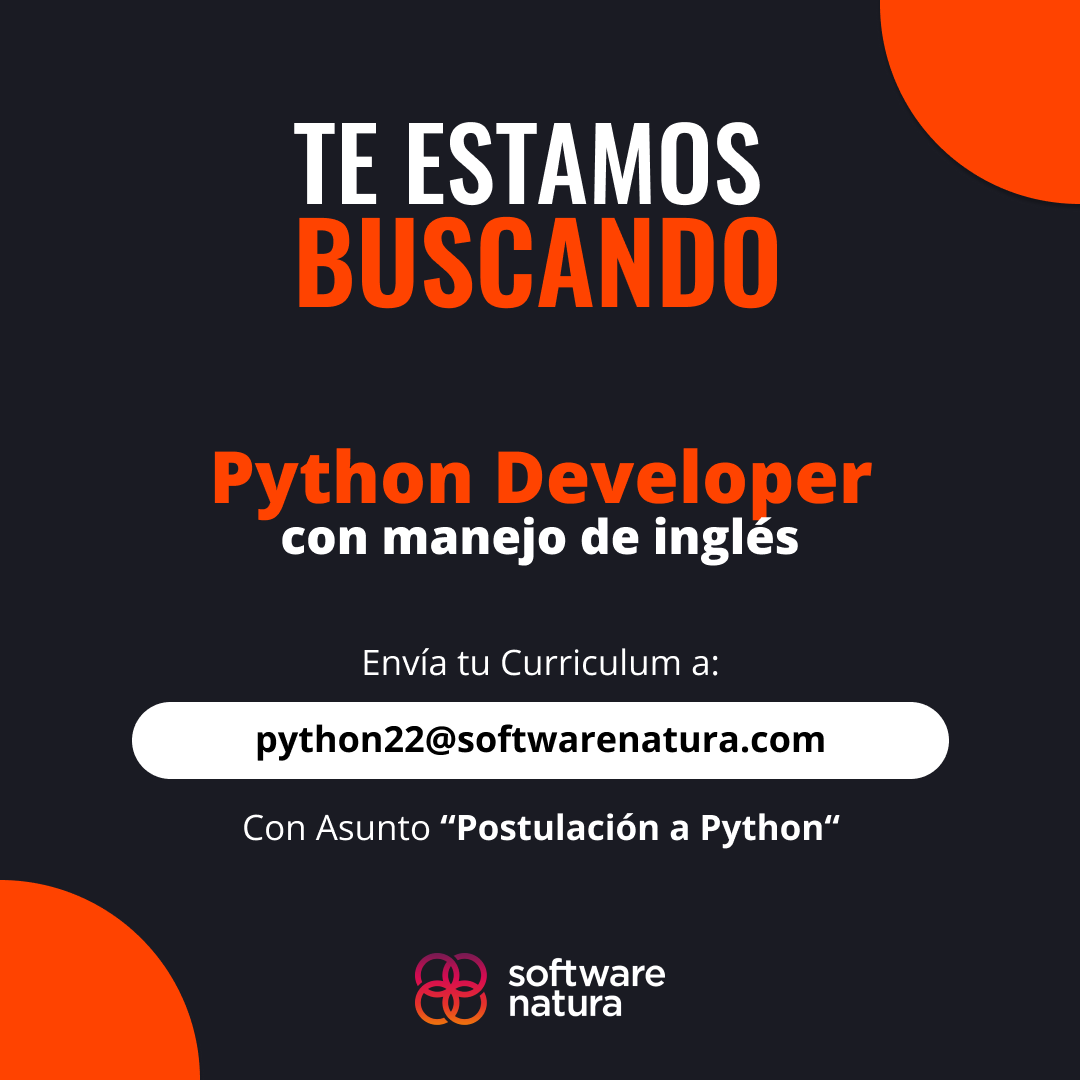 En Software Natura Buscan un Desarrollador Python con vasta experiencia, interesado en aprender nuevas tecnologías, optimizar soluciones y trabajar en un ambiente dinámico.