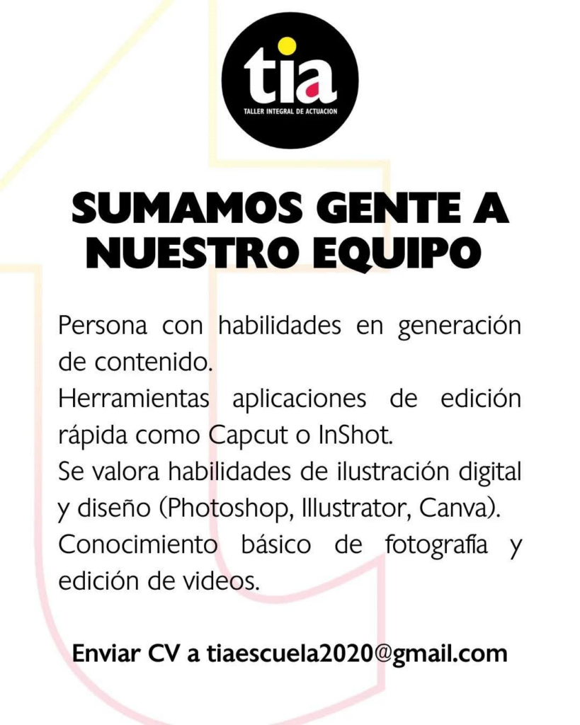Se pone a disposición de los interesados el siguiente siguiente correo electrónico para la recepción de CV : a tiaescuela2020@gmail.com