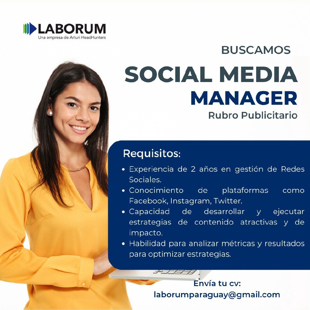 Empresa en busca de un Social Media para Rubro Publicitario, que cuenta con el siguiente perfil: