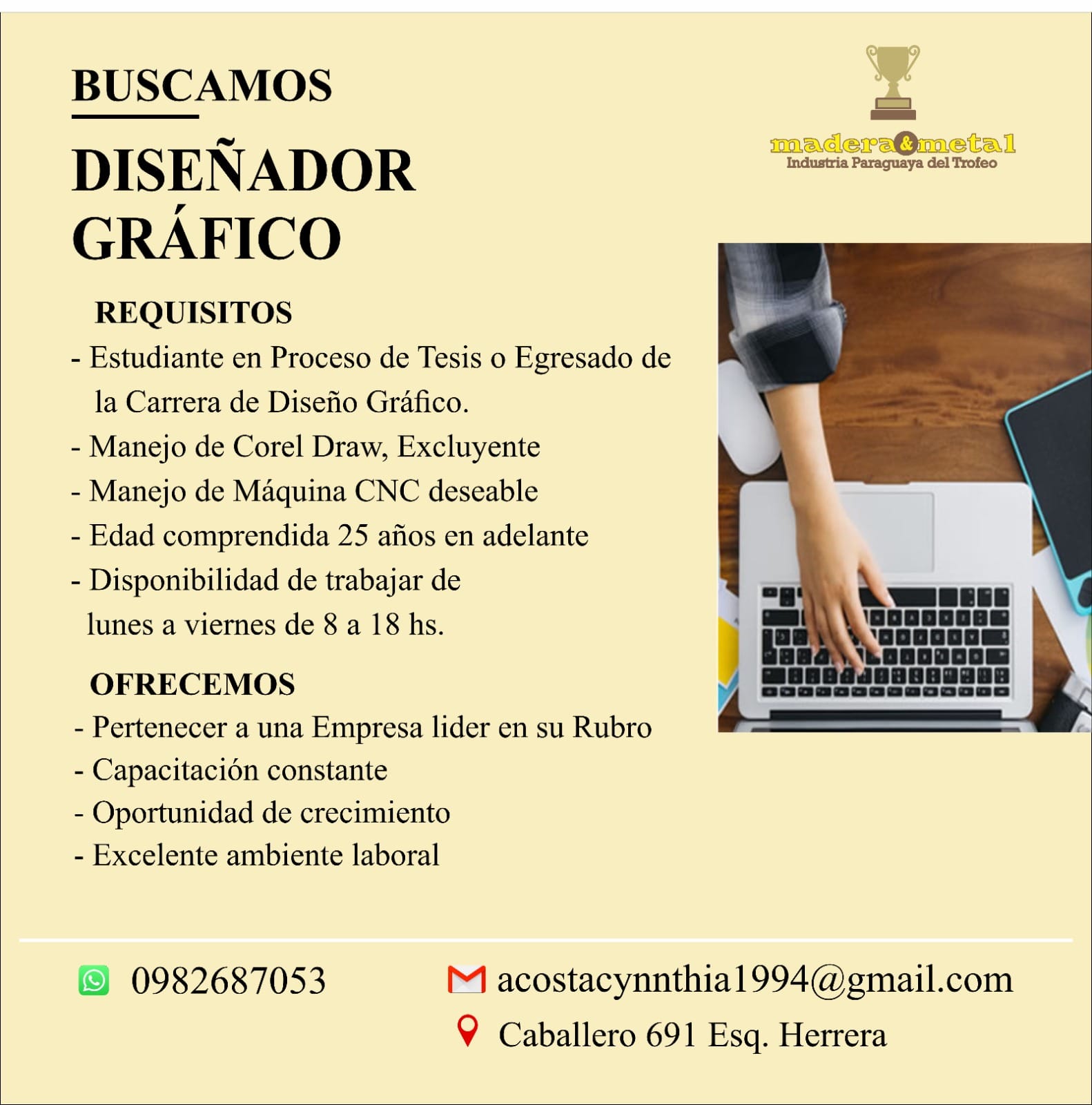 Se pone a disposición de los interesados el siguiente correo electrónico para la recepción de los CV: acostacynnthia1994@gmail.com