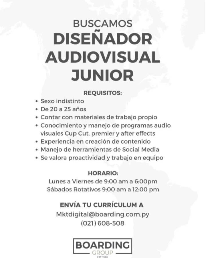 Se pone a disposición de los interesados el siguiente siguiente correo electrónico para la recepción de CV a : mktdigital@boarding.com.py
