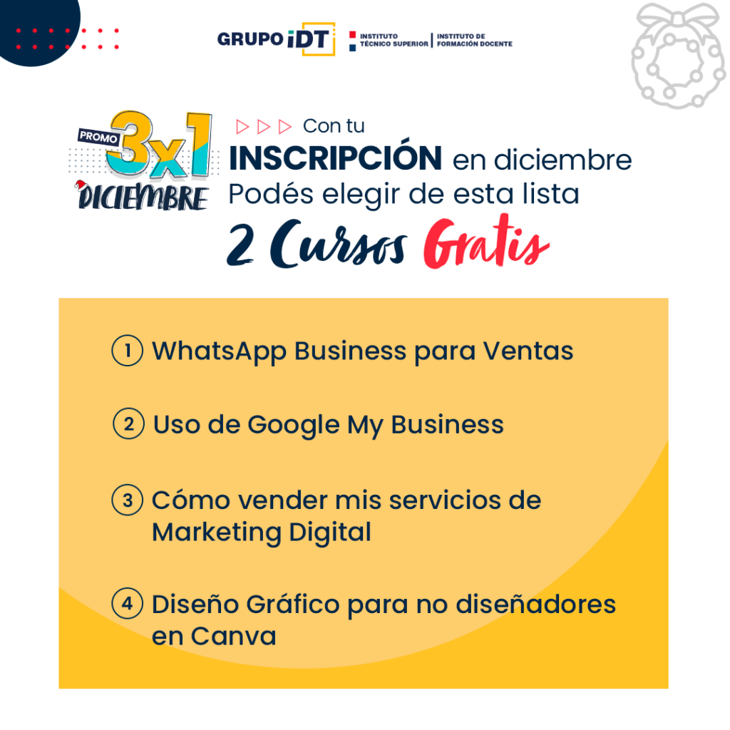 3 x 1 en este último mes del año, eligiendo cualquier curso de IDT, ya sea presencial o virtual
