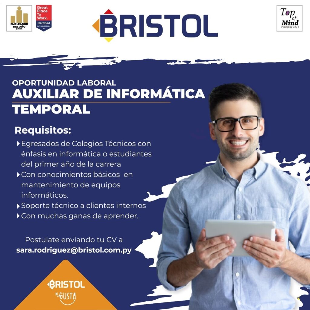 Se pone a disposición de los interesados el siguiente correo electrónico para la recepción de CV: sara.rodriguez@bristol.com.py