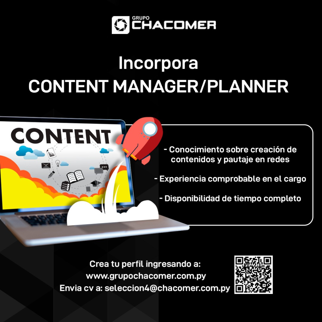 Empresa se encuentra en la búsqueda de un Content Manager / Planner que cumpla con los siguientes requisitos: