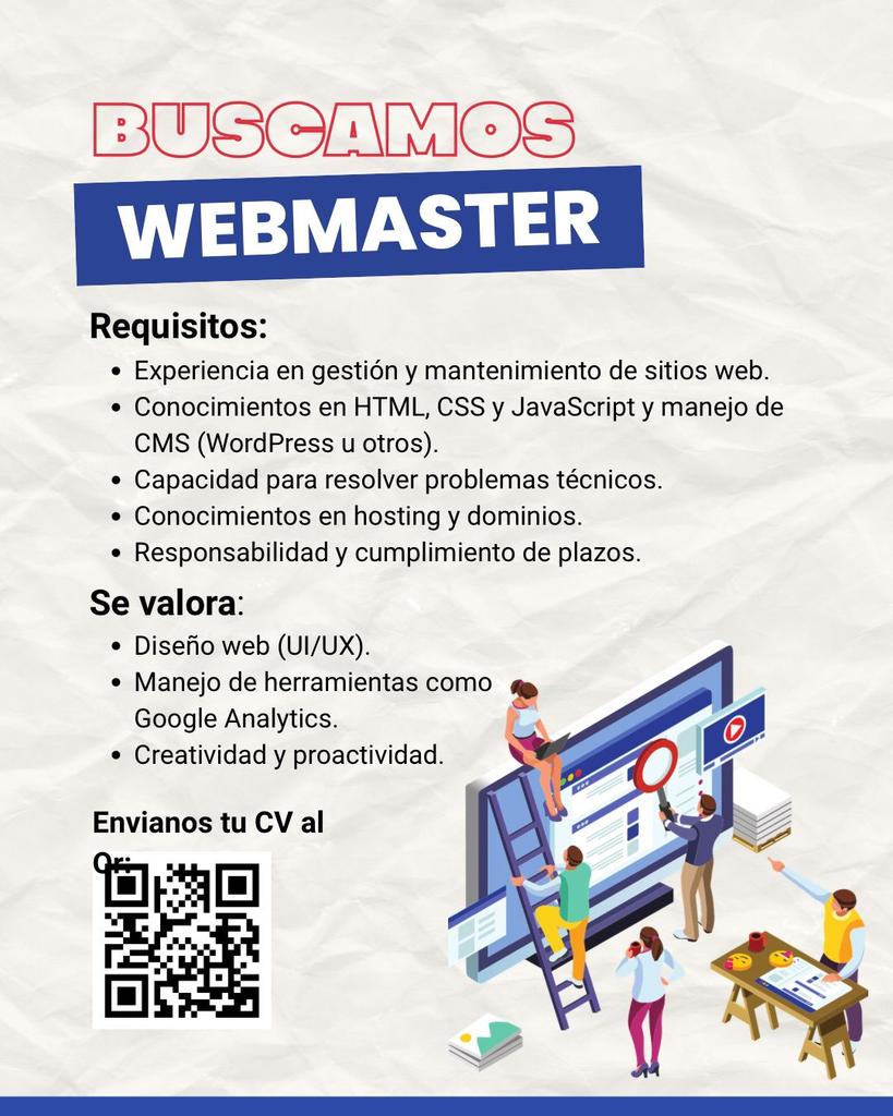 Empresa busca incorporar un/a Webmaster con experiencia en gestión de sitios web y conocimientos técnicos en desarrollo frontend.