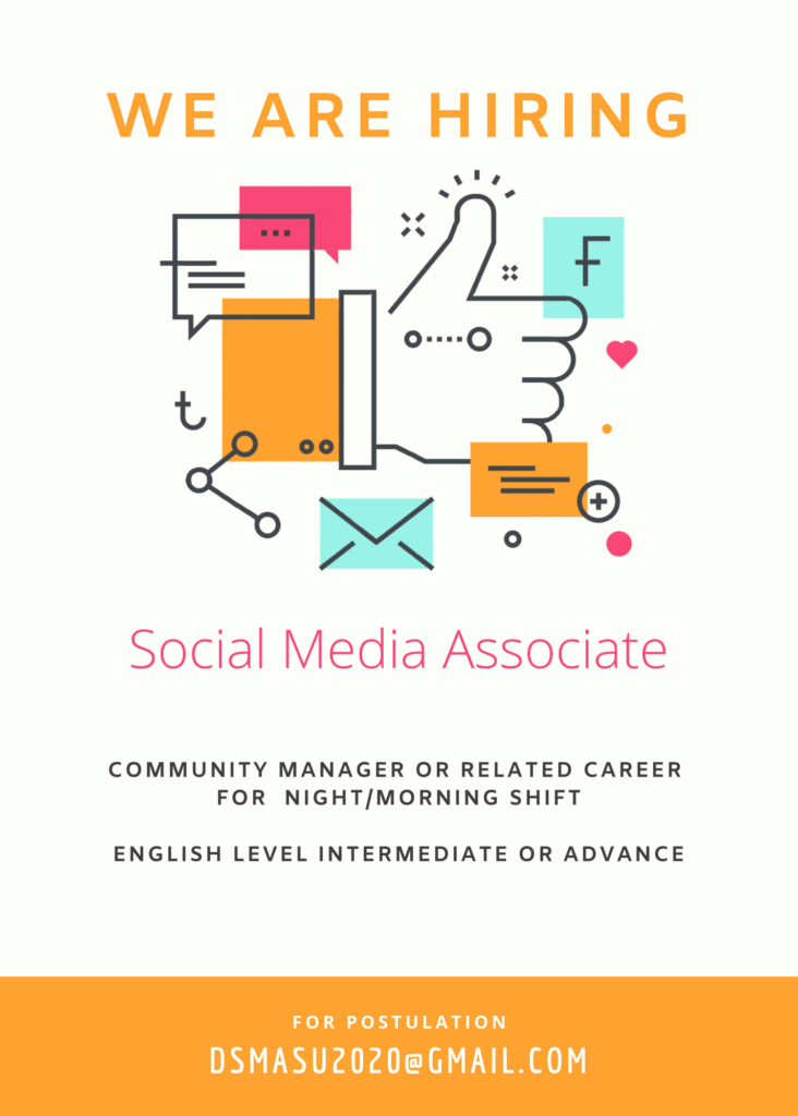Si estás interesado/a, postulate enviando tu CV con el asunto «Ref. Community Manager» al siguiente mail: dsmasu2020@gmail.com
