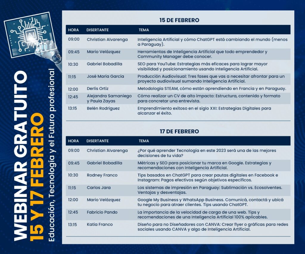 ¡En hora buena! durante este webinar  exploraremos las tendencias más importantes en inteligencia artificial, posicionamiento web, publicidad digital, producción audiovisual, metodologías STEAM, métricas analíticas, diseño gráfico digital, optimización de la carga de una página web, los empleos del futuro, y mucho más.