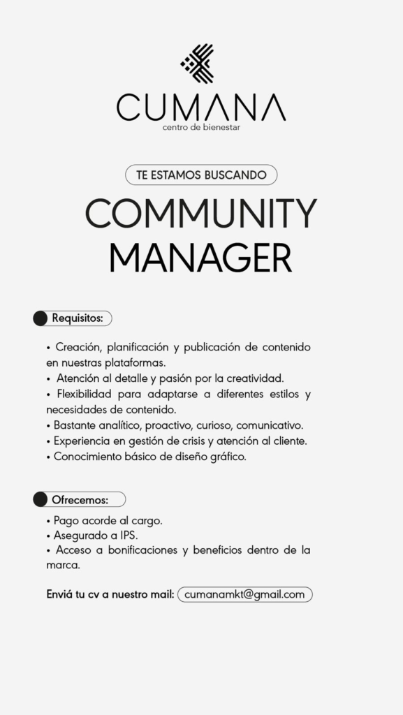 Se pone a disposición de los interesados el siguiente siguiente correo electrónico para la recepción de CV: cumanamkt@gmail.com