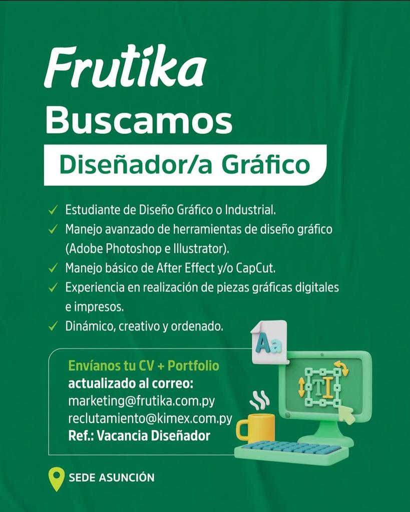 Se pone a disposición de los interesados el siguiente siguiente correo electrónico para la recepción de CV a : reclutamiento@kimex.com.py